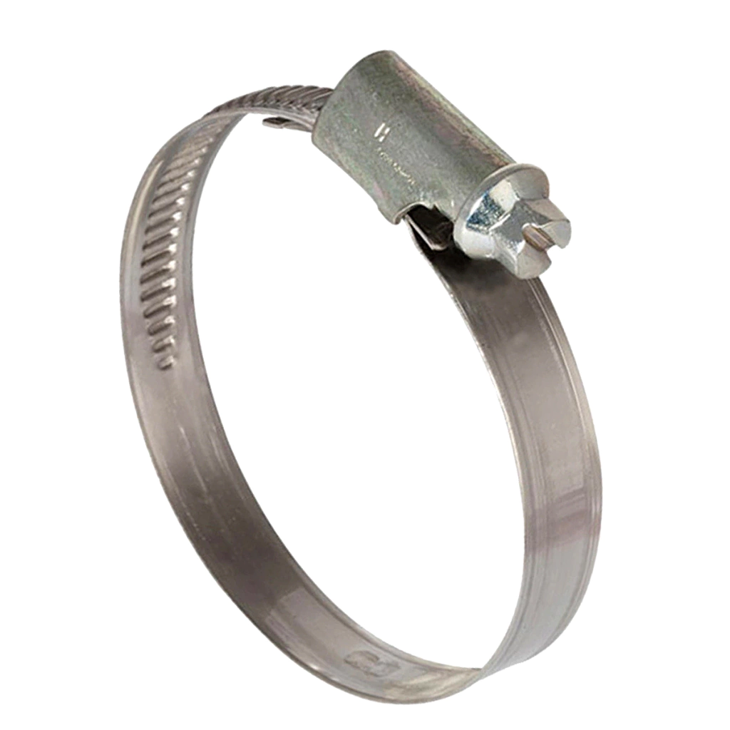 Fabricadas según norma DIN 3017 en acero inoxidable AISI 430. Carcaza y tornillo en acero SAE 1010 zincado con cabeza hexagonal. Bordes redondeados. Construídas con carcaza de una sola pieza sin soldadura, su corto asiento a la manguera forma con la banda estampada una óptima seguridad de apriete.